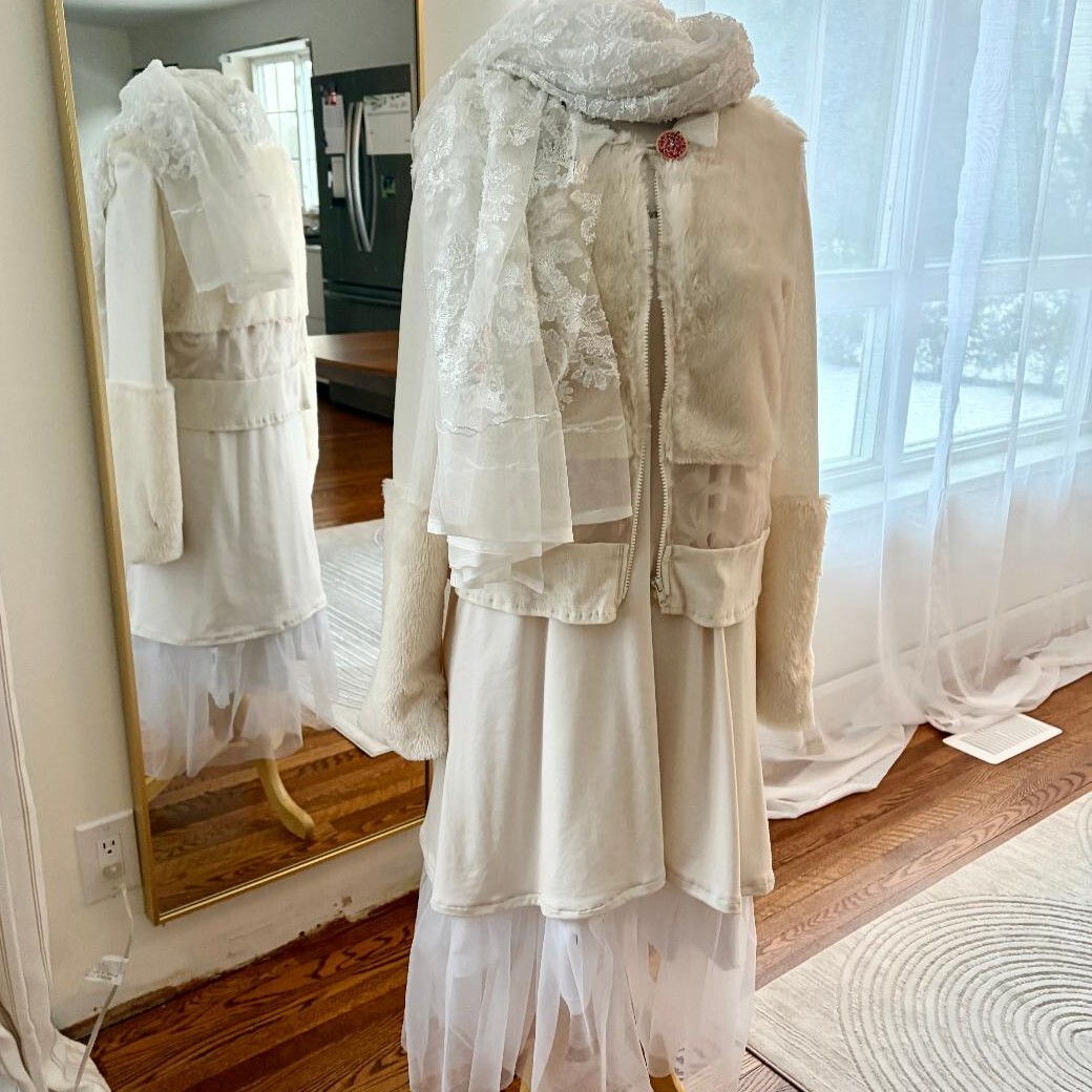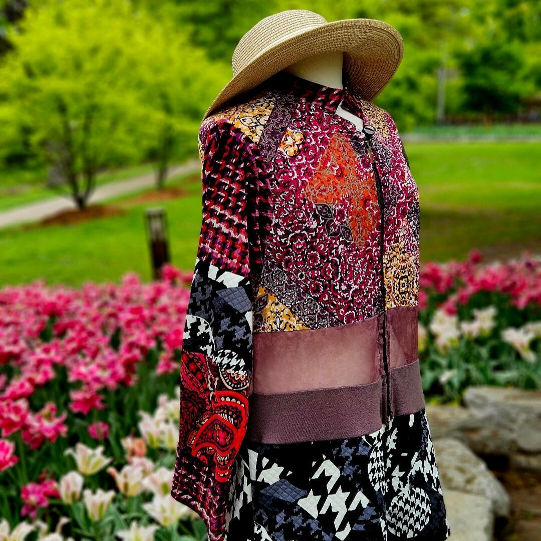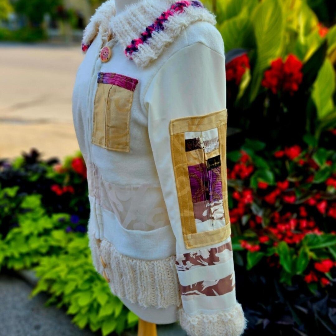 We combine knits, sheer, faux fur and select textile waste fabric to create soft wearable art.