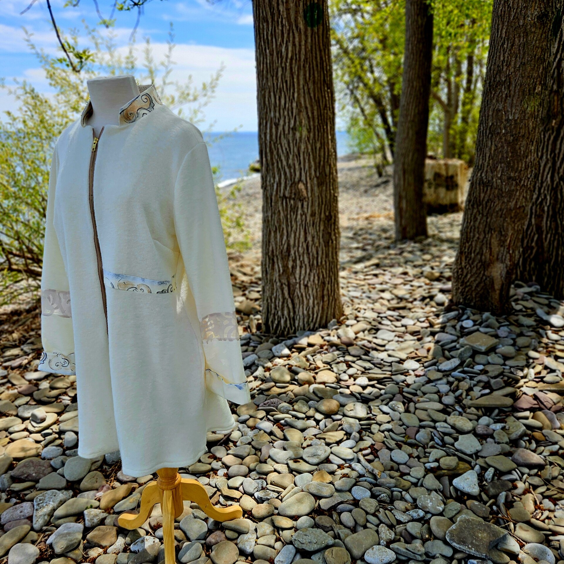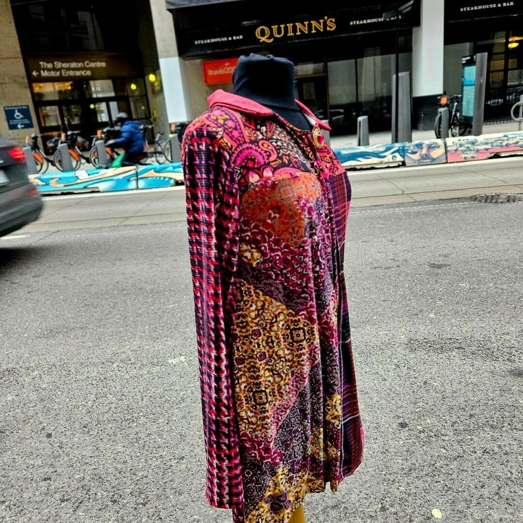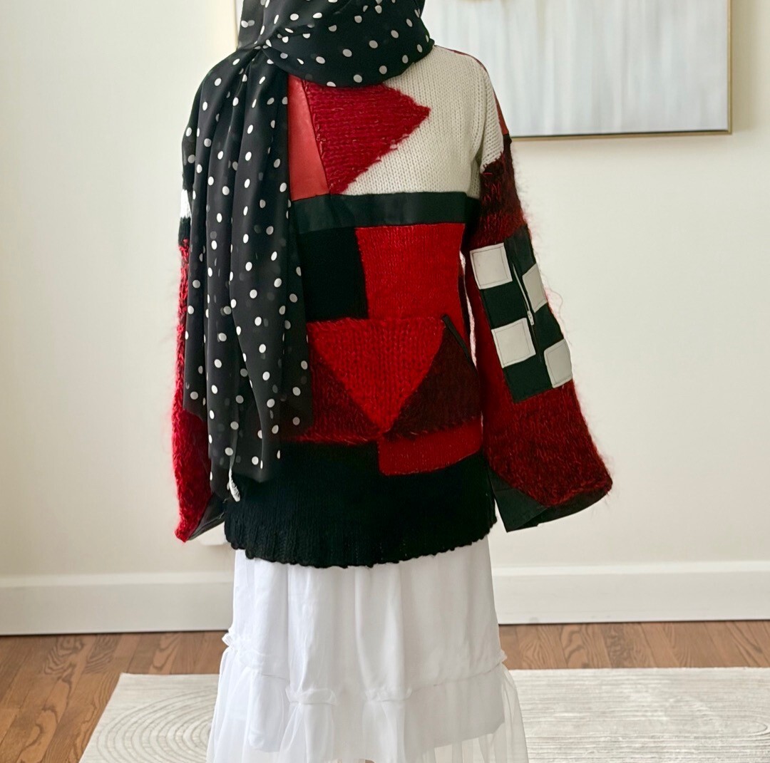 We combine knits, sheer, faux fur and select textile waste fabric to create soft wearable art.